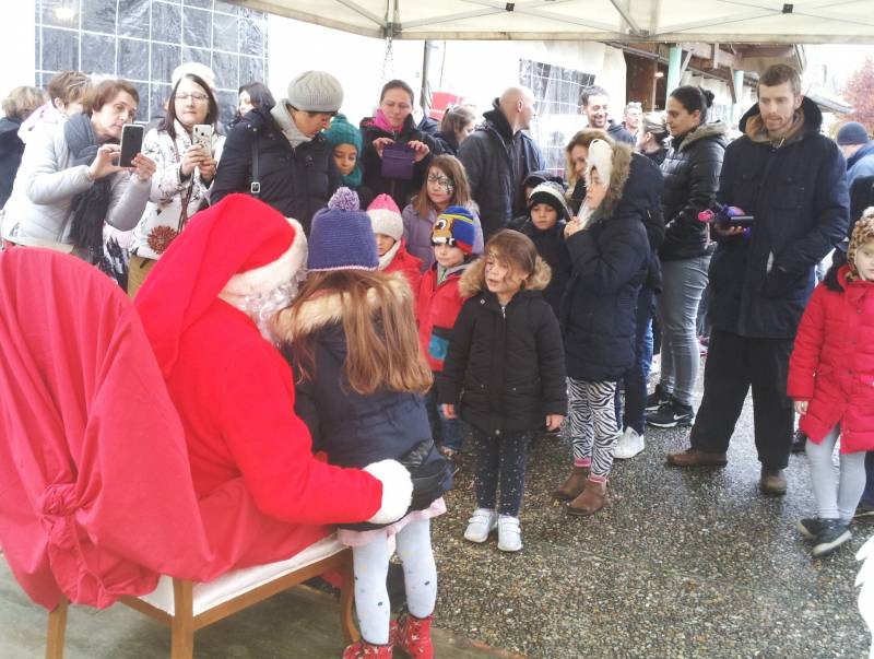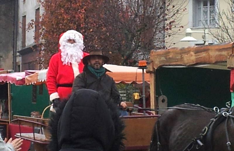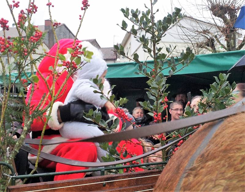 Lors du marché de Noël, organisé par le Comité des Fêtes, le Père Noël arrive et offre aux enfants des bonbons et un goûter.