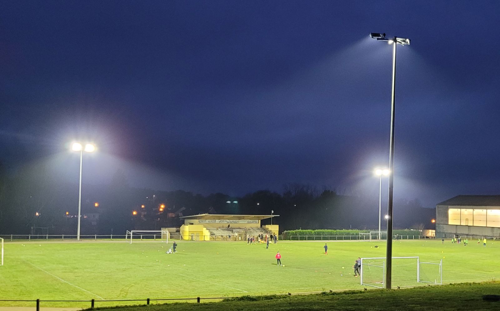 Afin de pouvoir assurer un atterrissage de nuit de l’hélicoptère du SAMU, l’éclairage du stade a été réalisé pour permettre un posé en toute sécurité. La commune a choisi une solution qui permette aussi d’utiliser le stade pour des matchs ou des animations en nocturne.