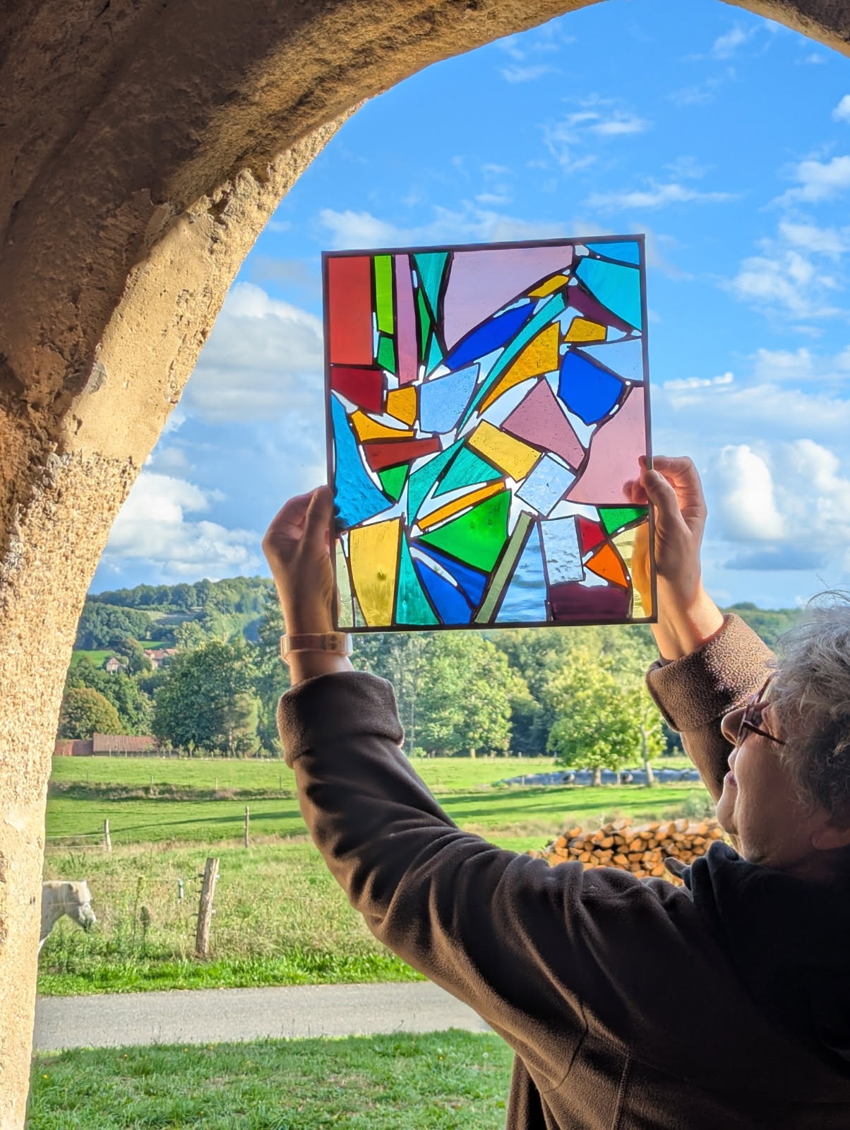 Plus de 40 personnes ont pu participer à la réalisation d’un petit vitrail, ajoutant, à tour de rôle, un morceau de verre coloré, ou en soudant la structure métallique.