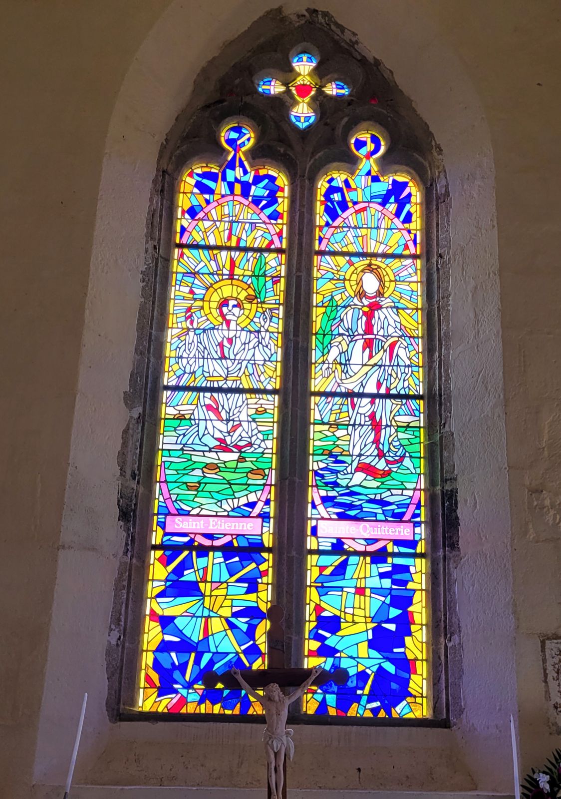 Conformément au permis de construire, et pour terminer la restauration de l’église de Lageyrat, la pose des vitraux est maintenant terminée.