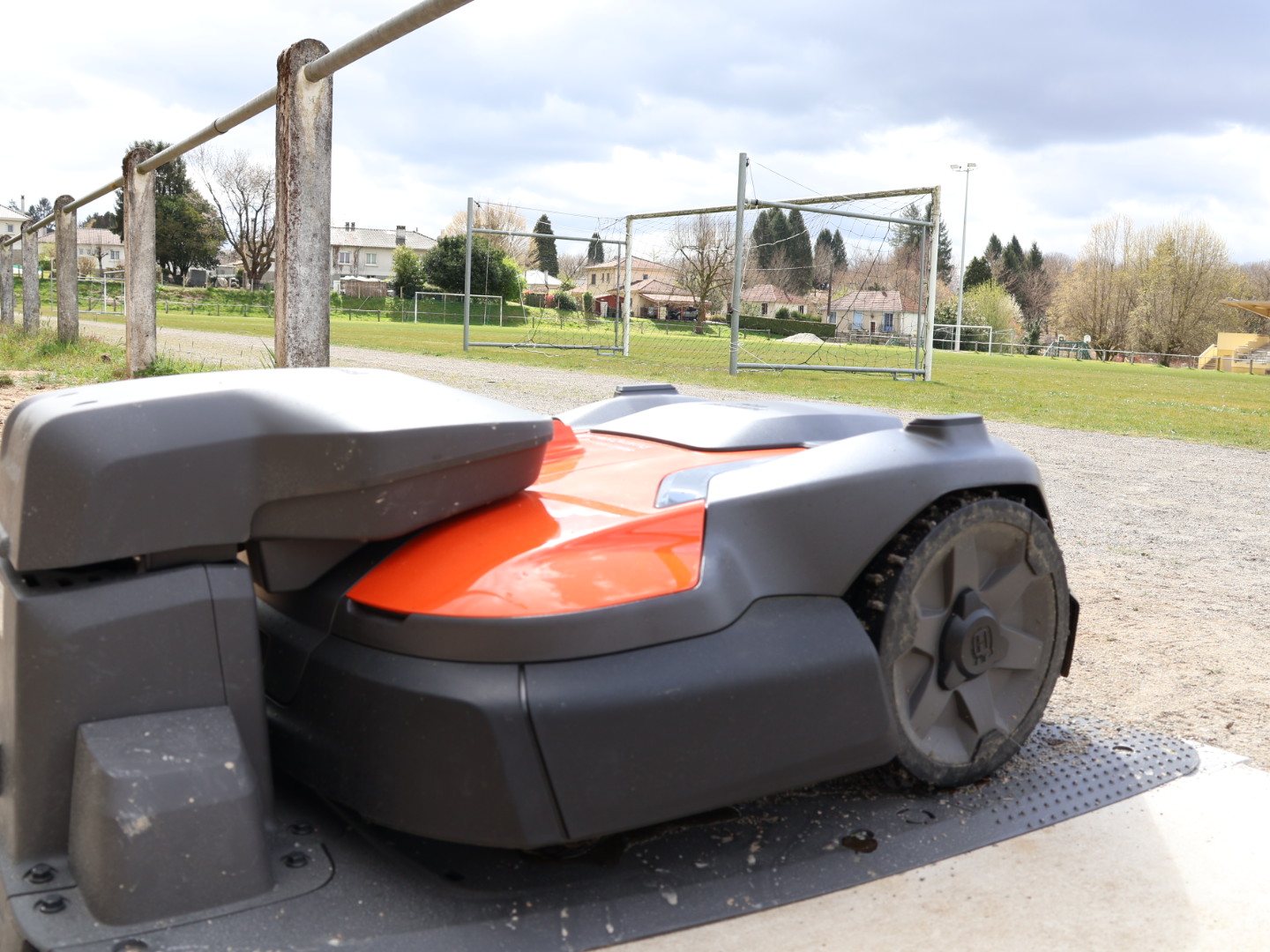 Après la réalisation de l’éclairage du stade en décembre 2025, la municipalité a fait l’acquisition d’un robot de tonte mis en service fin mars.