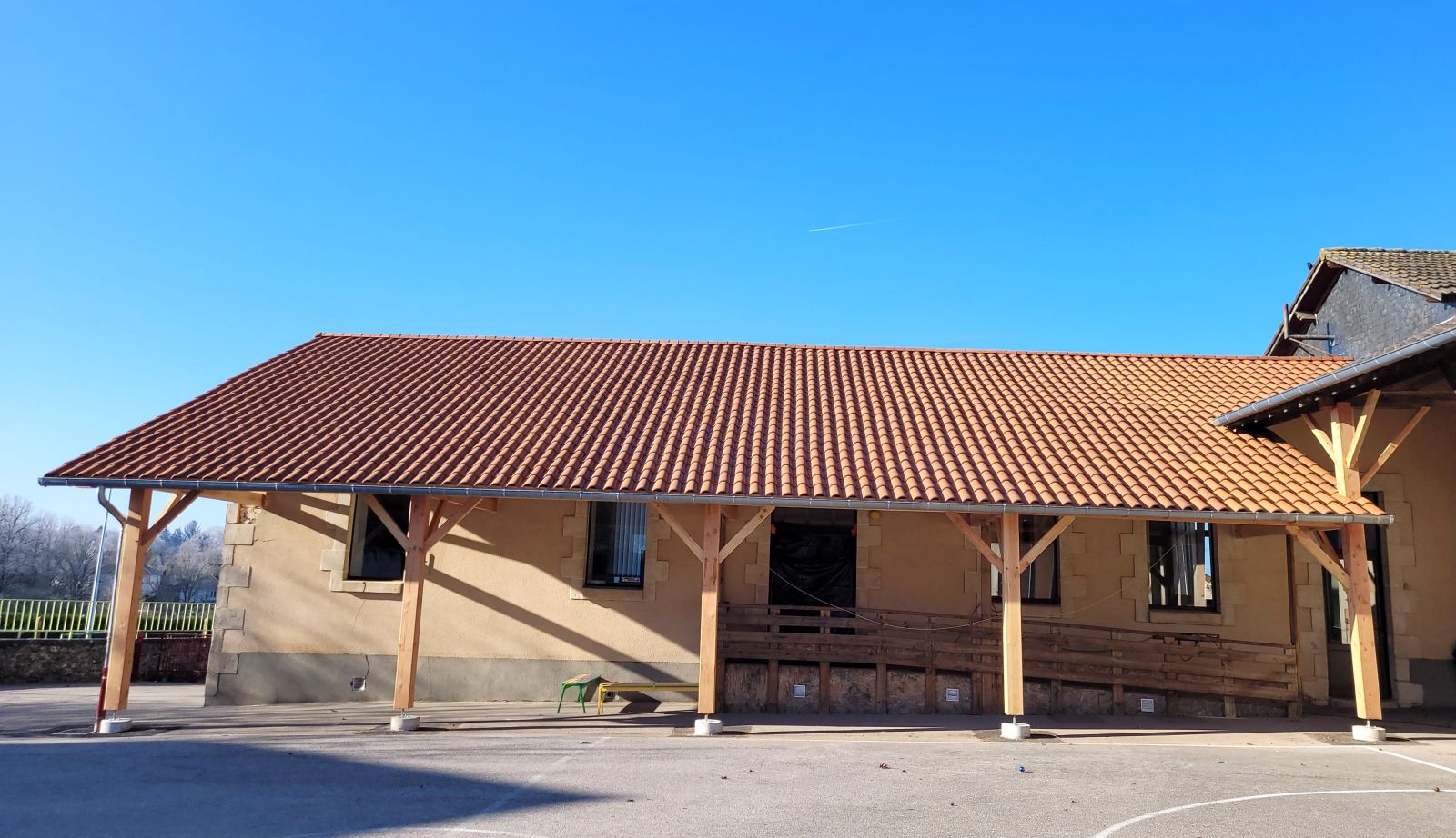 L’entreprise Nantiéras de Dournazac a ensuite procédé à la réfection de la charpente et de la toiture du bâtiment et du préau.