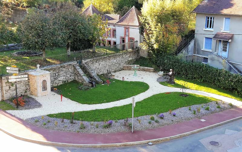 L’oratoire St Roch, situé en bord de route, a été déplacé pour une meilleure intégration dans cet espace paysager ; l’ancienne fontaine du centre-ville y a été réinstallée et des plantations ont été faites.
