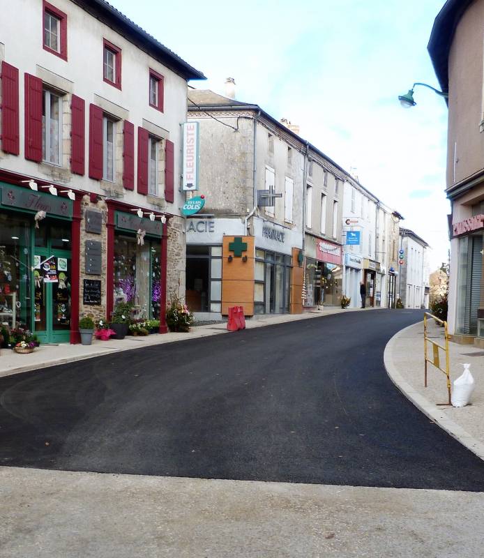 La 2ème phase des travaux de rénovation du centre-bourg a permis l’effacement des réseaux électriques et téléphoniques, le remplacement des réseaux d’eau potable et d’eaux usées, le renouvellement des candélabres d’éclairage public puis, dans un dernier temps, la rénovation de la voirie dans la rue Salardine entre la rue de l’Europe et l’avenue François Mitterrand ainsi que la ruelle qui conduit à l’église.